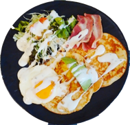 (食事系パンケーキ)・厚切りハムとアボカドのパンケーキ